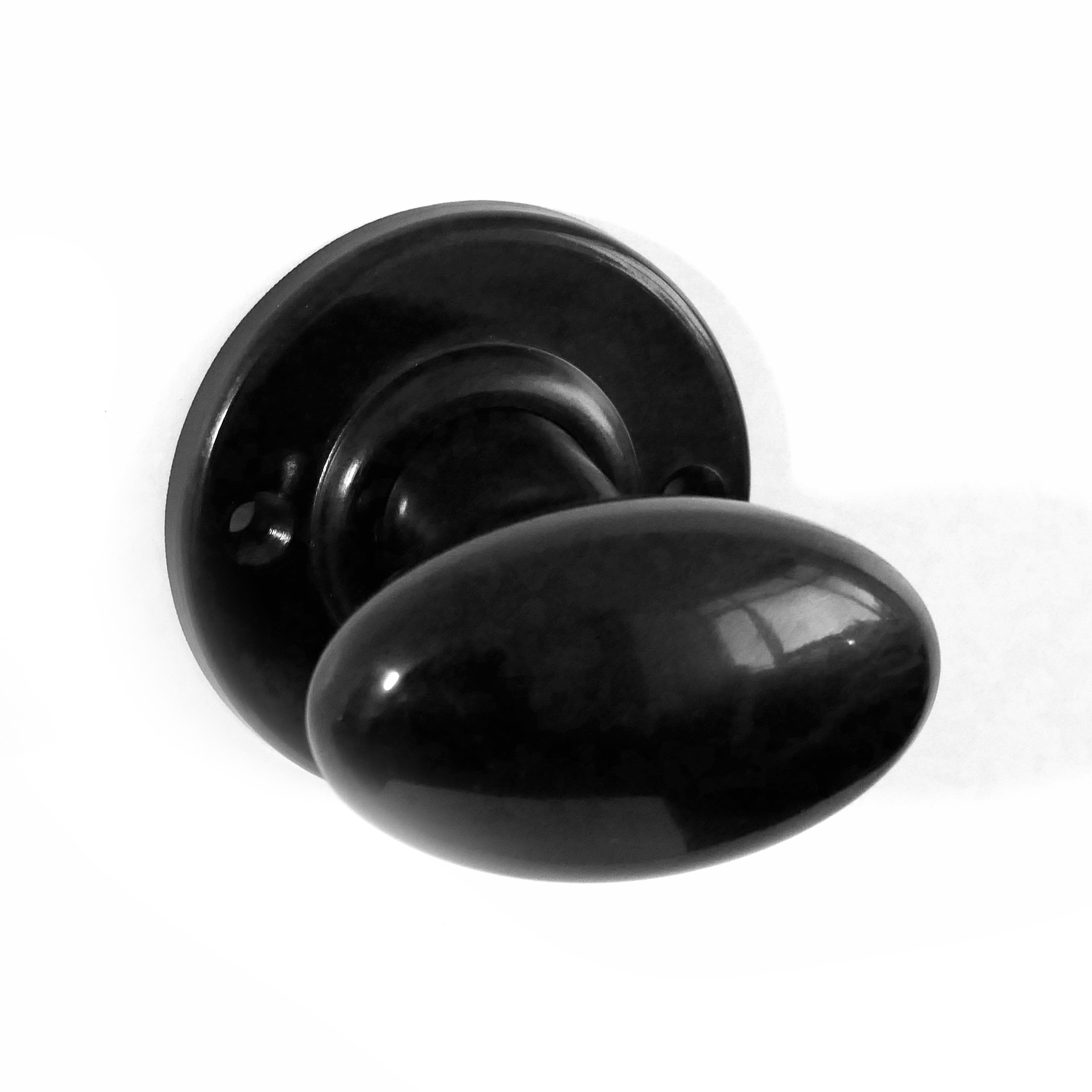 Bakelite Smooth Oval Door Knobs – Black – Metal Rose